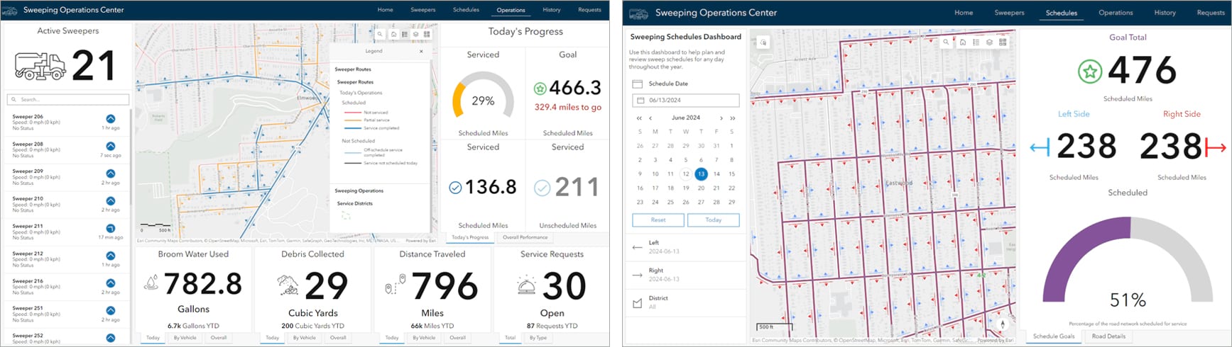 Develop street sweeping schedules, manage a central repository of sweeper information, monitor real-time sweeping activity and service performance, and share sweeping schedules with the public.