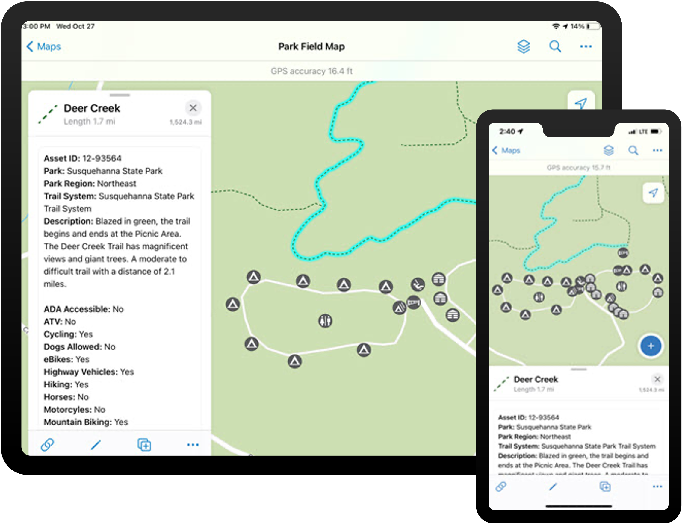 Park Infrastructure Management can be used to inventory park assets, understand asset condition, and communicate changing asset conditions that impact park services.