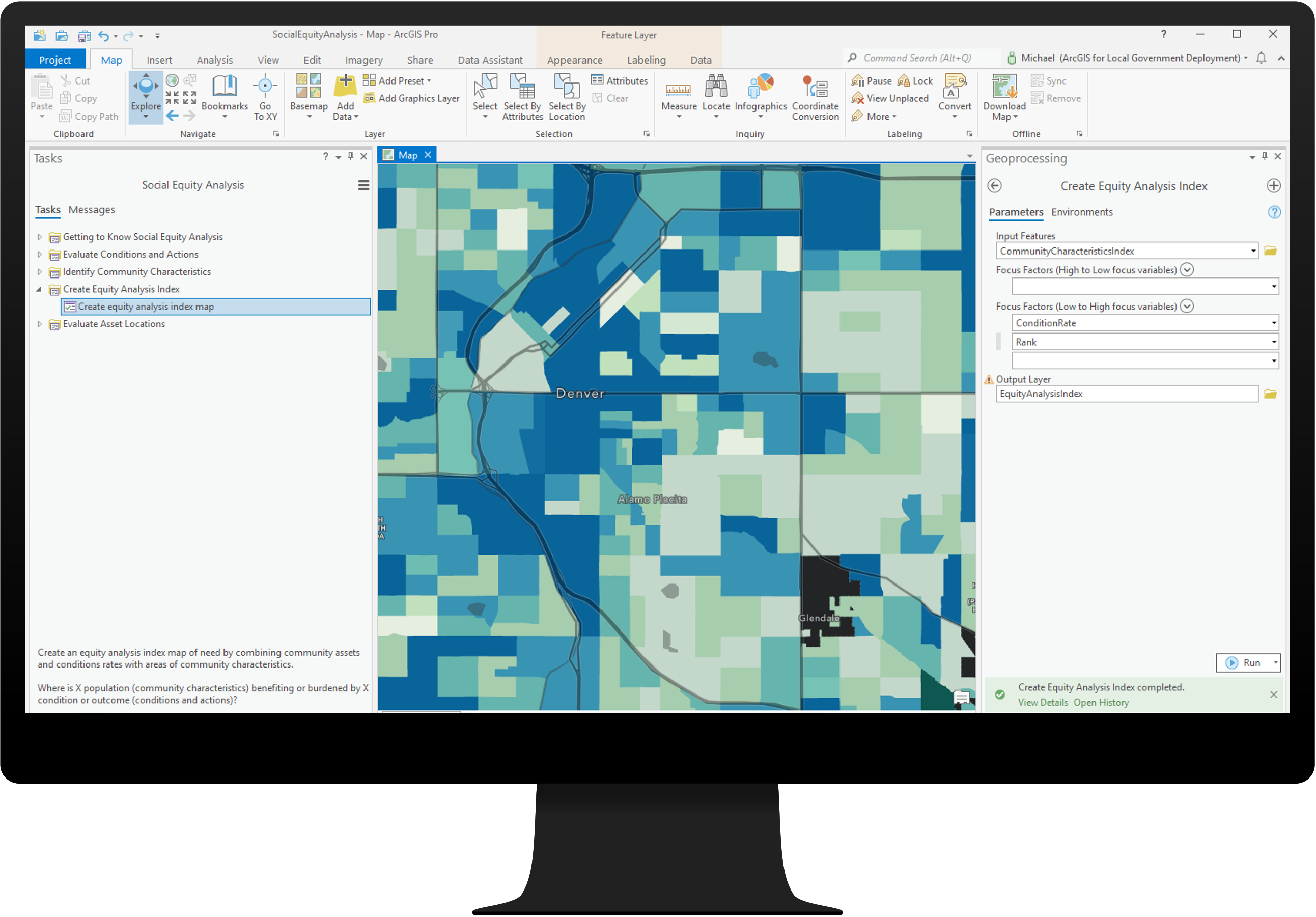 Social Equity Analysis can be used to identify and analyze demographics, assets, conditions, and outcomes to optimize plans for community investment.