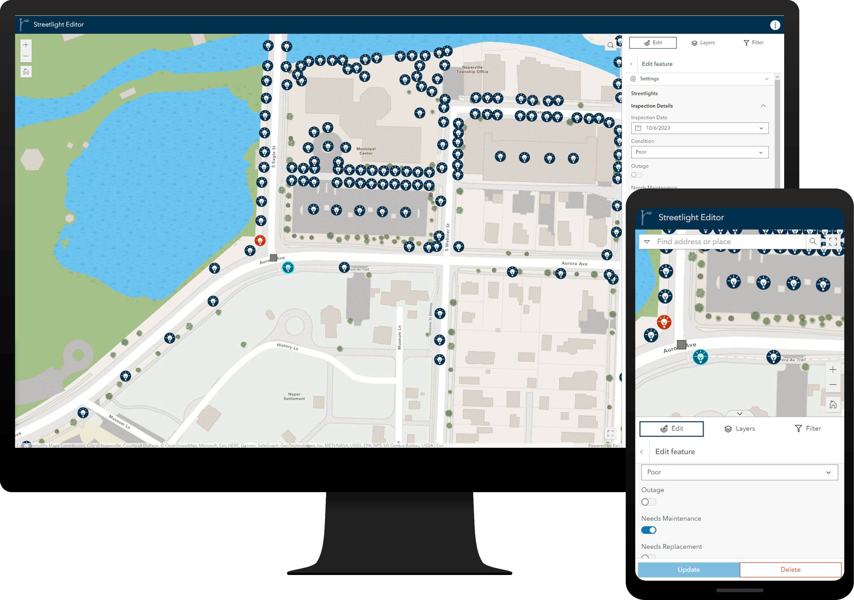 Streetlight Management can be used to collect streetlights, cabinets, and poles, streamline inspection and maintenance activities, and understand asset conditions.