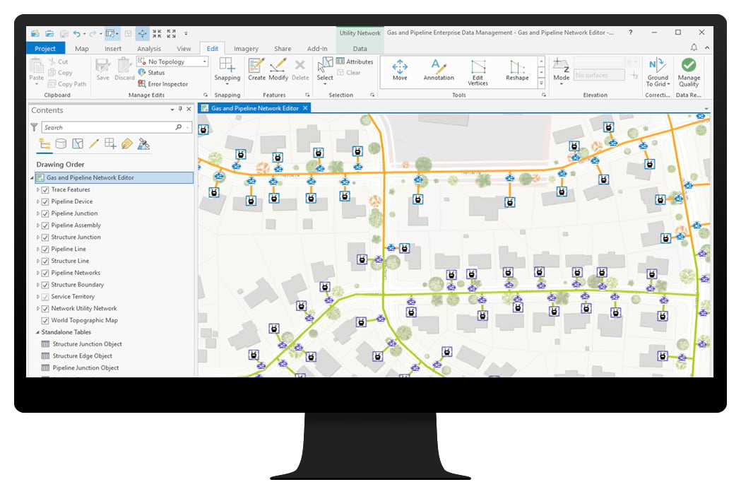 Gas and Pipeline Enterprise Data Management can be used by gas utilities to maintain vertically integrated gas systems and hazardous liquid pipelines in a Utility Network. It includes the Utility and Pipeline Data Model (UPDM) and common gas and pipeline data management workflows.