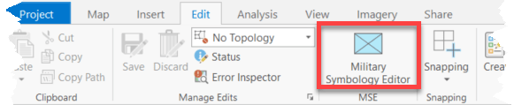 Using Military Symbology Editor you can search for basic symbols, modify attributes, preview complete military symbols, and save favorites. You can add these military symbols to the map by clicking the map or entering coordinates. The Military Symbology Editor tools can be added to a new or existing tab by customizing the ribbon.