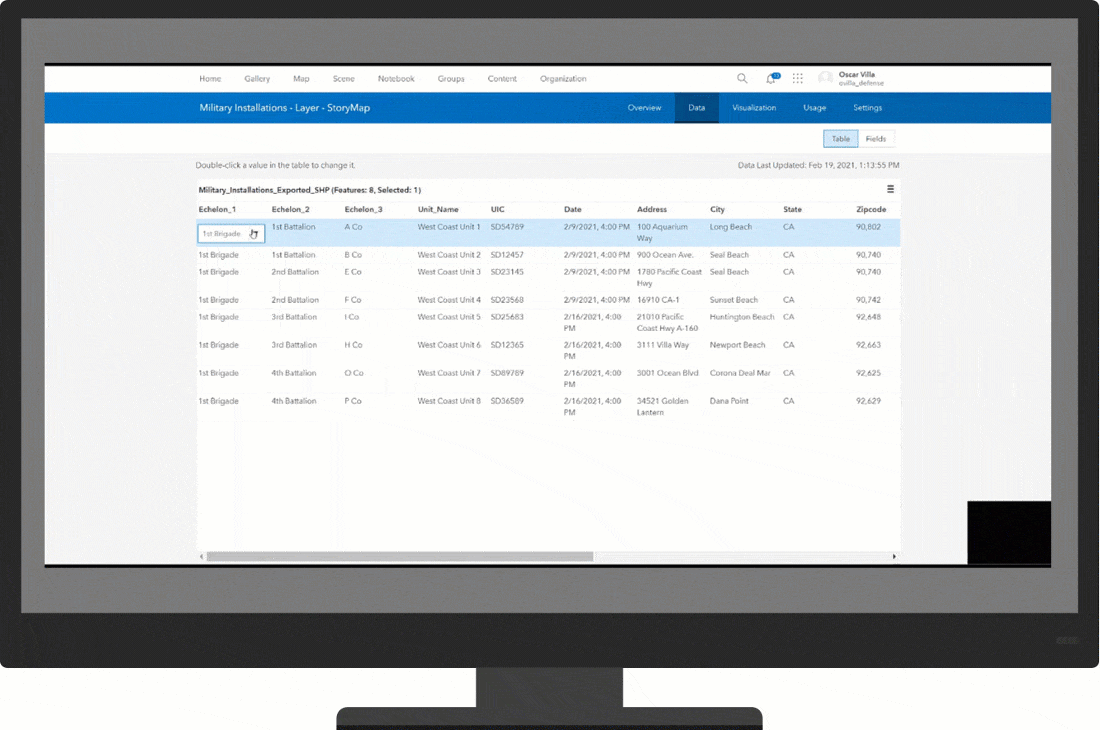 The solution enables a military organization to quickly upload their installations and resource inventory data. Immediately after datasets have been uploaded, the solution will execute a join function and combine the two files. Resource Management will rapidly begin to organize it all into a modern and interactive user interface.