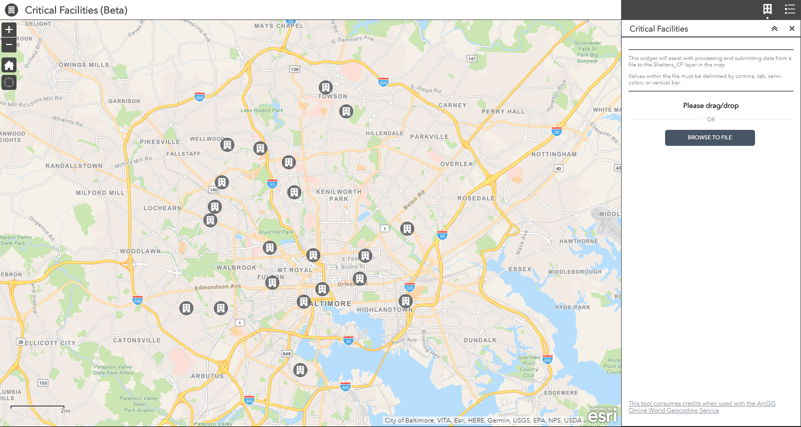 Critical Facilities (Beta) enables emergency management agencies to share information about critical facilities with a community