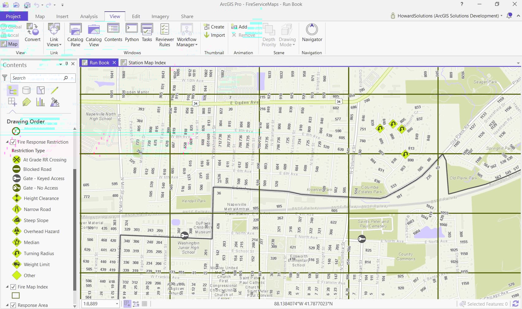 Fire Service Maps enables fire departments to create fire district wall maps and run books
