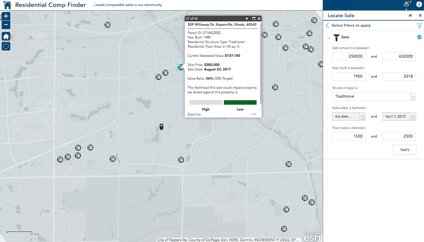 Residential Comp Finder (Web App Builder for ArcGIS) helps the public, real estate agents, and appraisers find comparable sales and related property information