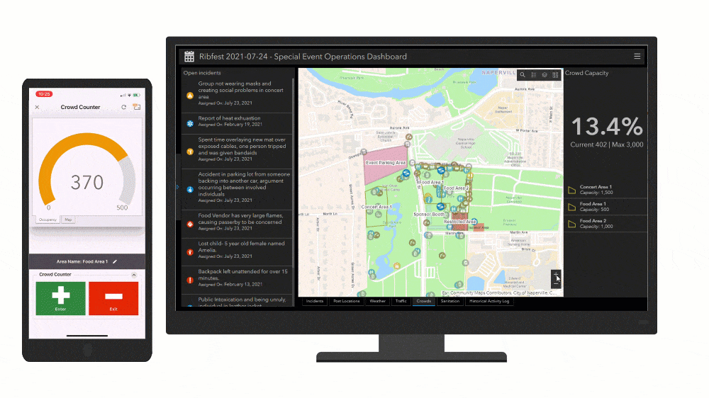 - Monitor incidents, crowds, sanitation, weather, traffic and locations of personnel in real-time.