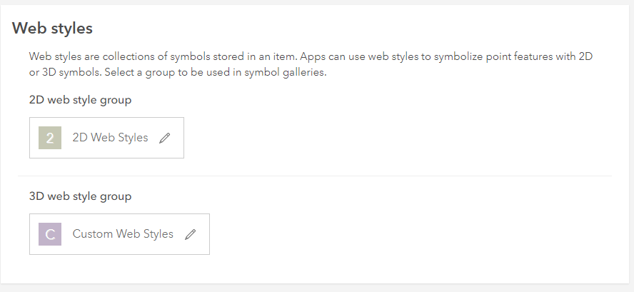 If a group hasn’t been configured, an organization’s administrator will need to create it and designate it as the organization’s 2D web style group in the map settings.