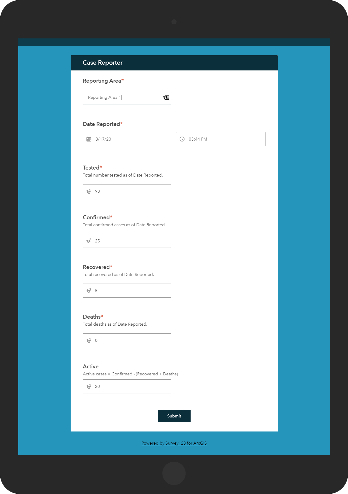 Additionally, a Case Reporter application is provided for community staff to tabulate coronavirus cases.