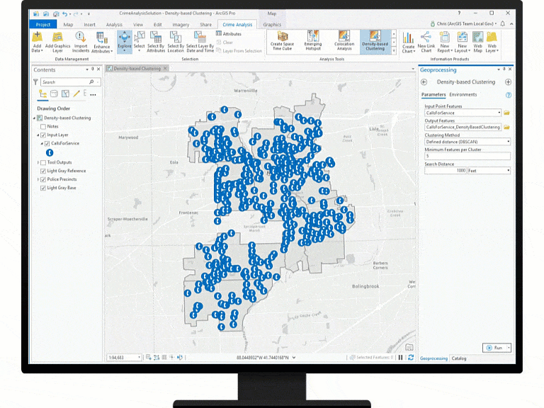 - Identify incident clusters with machine learning: Density-based Clustering uses machine learning to find clusters of incidents and can be used as an alternative or complementary method to traditional hot spot identification methods such as kernel density.