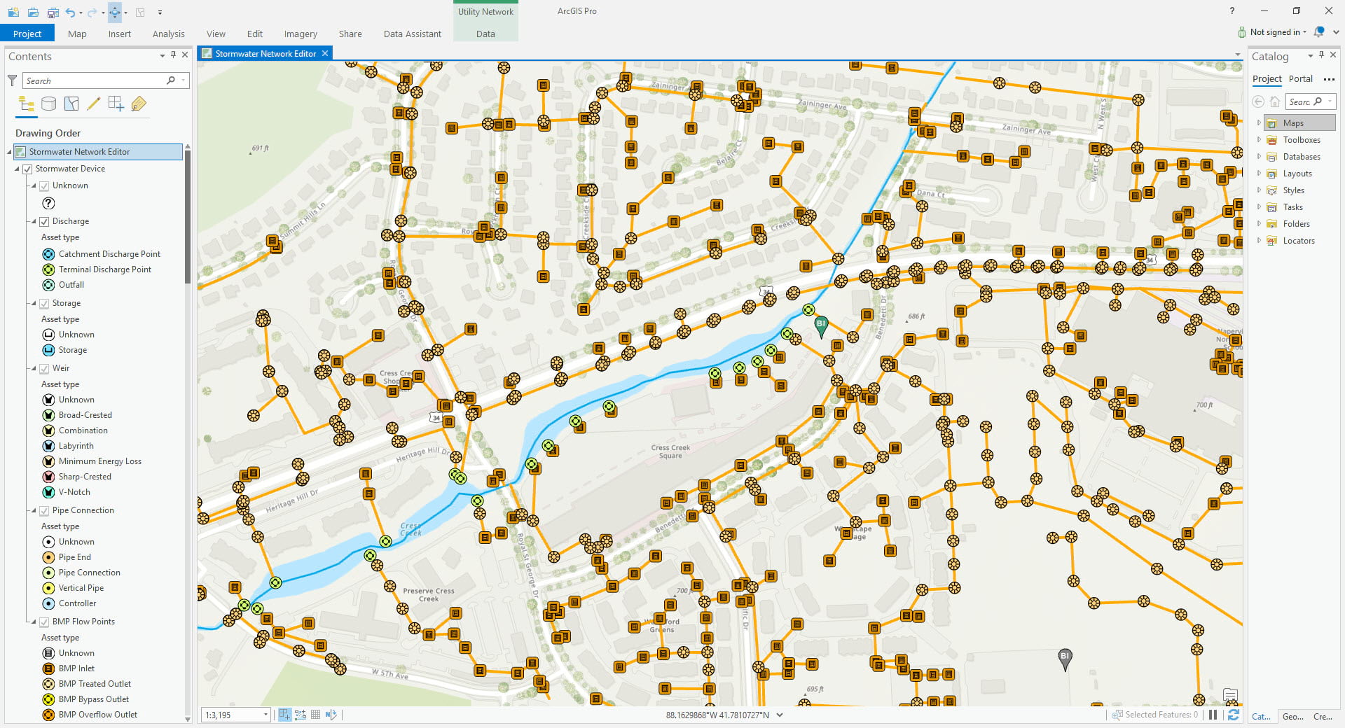 It is important to understand the Stormwater Utility Network Configuration is a starting place for deploying a utility network for stormwater. You should modify the configuration to fit how your stormwater system physically exists and functions.