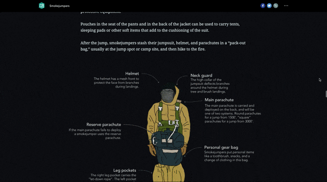 With the Smokejumper story map, I got my first chance to create illustrations and build the story map around them.