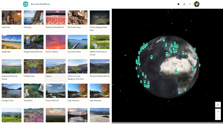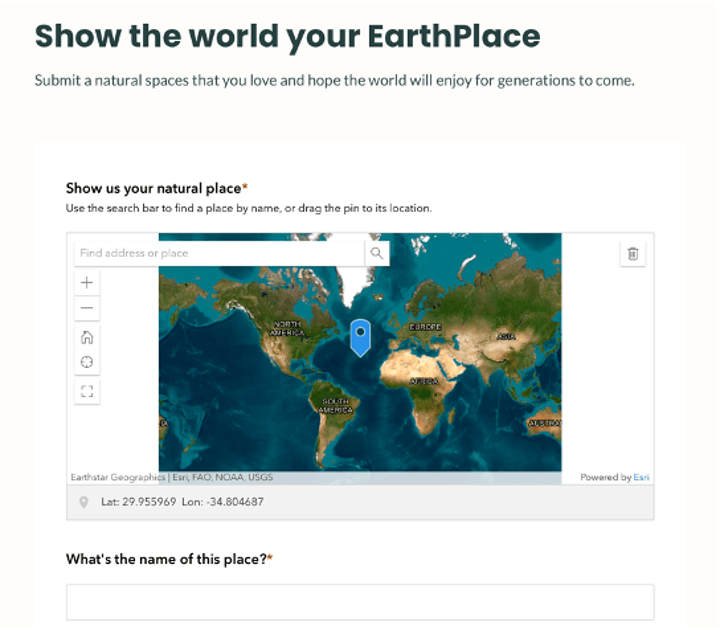 A great example is Share your EarthPlaces. This story invites the audience to participate by sharing their favorite places around the world. All you have to do is embed the survey directly into your story, and your reader can fill out the survey without leaving the page. Once submitted, the survey response is added to the globe as a pinpoint on the map tour. This creates a great collaborative way to collect data all in one story.