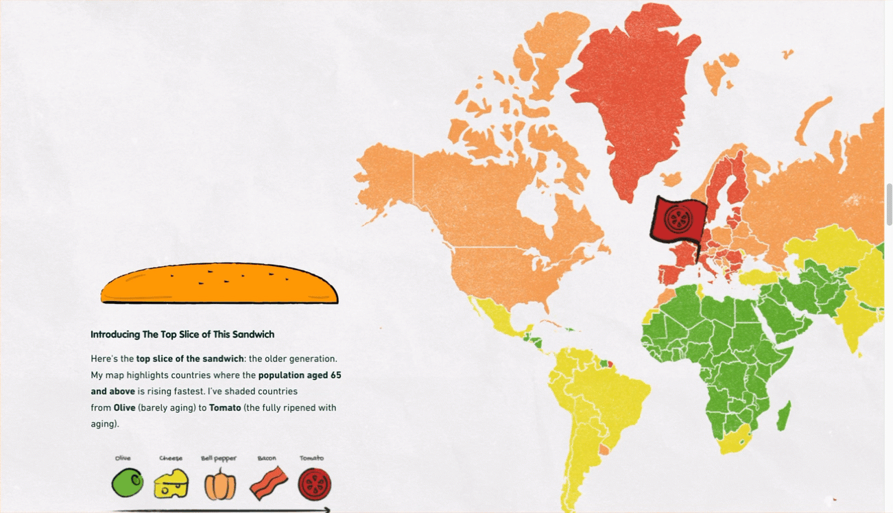 It is hard to choose a favorite because every builder feature plays a different role in shaping the story. But if I had to live with just one, it would be the sidecar block for its versatility. It allows the visuals and the narrative to take turns leading, and it gives me control over pacing, focus, and how much information the reader sees at each moment. With the sidecar block, the story flows in a way that feels almost like reading a picture book. It also reflects the scrollytelling approach that UI/UX designers are very familiar with, where scrolling becomes the interaction and content is revealed progressively. This helps manage cognitive load and lets the reader move through the story at a natural rhythm.