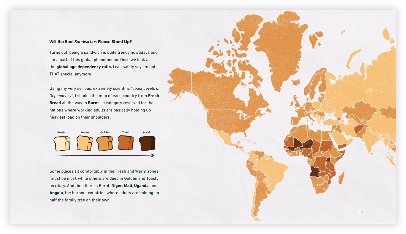 And the 2025 ArcGIS StoryMaps competition? Azah has delivered—and been named a finalist—again. In her story titled Dear Diary, Adulting Just Got Too Expensive, Azah returns with a relatable, focused narrative and energetic maps and graphics to examine global demographics and costs of living; broad topics that Azah masterfully assembles into a sandwich, literally.