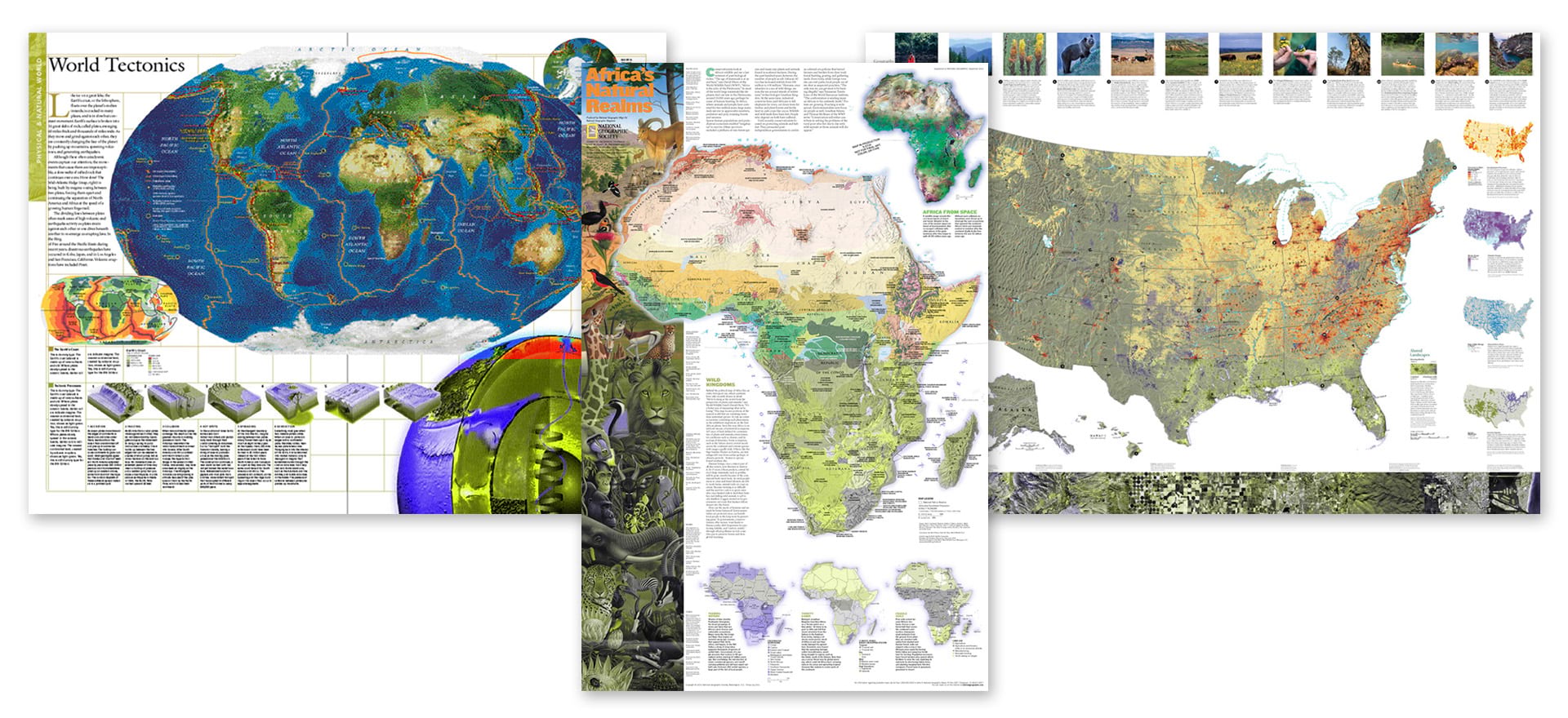 Maps have been telling stories for centuries. In a way, every map tells a story, both about the places it depicts and about the perspectives and biases of the mapmaker. In the latter years of my long tenure at National Geographic, I had the good fortune of telling stories with maps as the Society’s chief cartographer. The vast majority of that storytelling was published via ink and paper (see examples below). We used all sorts of tricks and techniques to create narrative flows within a static medium: We manipulated hierarchies of type, we tweaked color palettes, we adjusted layouts and compositions to guide readers’ eyes across a page, an atlas plate, or a large-format wall map.