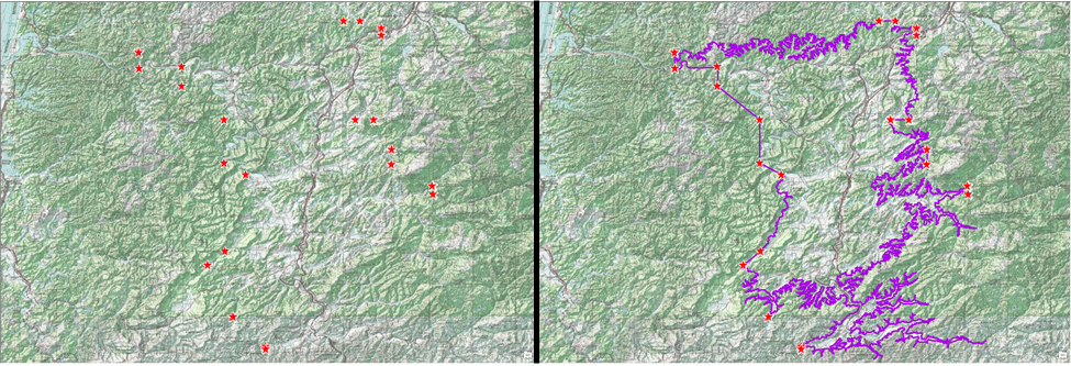 One AVA at a time, the team started the conversion from written instructions and paper maps to GIS by creating points for each CFR description in a Viticultural Area. For example, “Commencing at the intersection of State Route 90 with State Route 5 in Cayuga County, north of Cayuga Lake.” We used industry-accepted national datasets—including U.S. Census administrative boundaries and roads, USGS contours, and the National Hydrography Dataset— for the points. The connected CFR points formed viticultural boundaries. Draft versions of the AVAs were published to ArcGIS Online and shared with TTB staff in a Web AppBuilder application for review. With an intimate knowledge of the CFR, TTB staff was able to zoom in closer than ever to check boundaries for accuracy and confirm with the paper maps as needed.