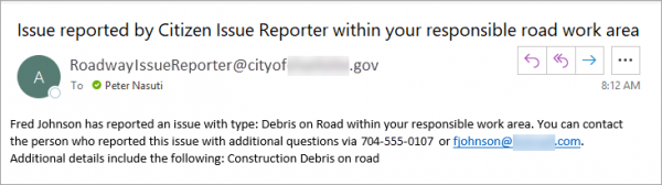 The second goal of this use case was to direct any citizen reported issues within a certain distance of a road to the site manager responsible for that road closure.