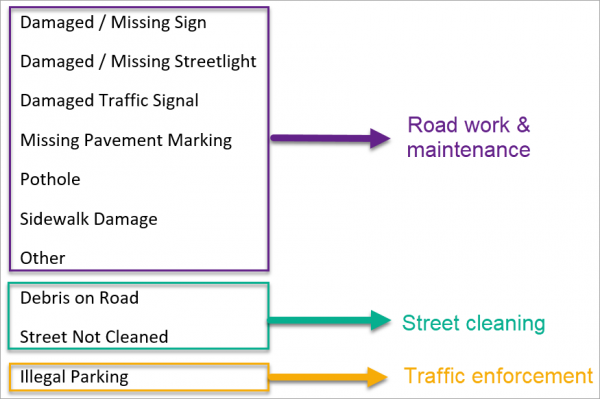 Once we’ve broken out the citizen reported issues by type, they can be sent to respective feature layer outputs for integration into other systems or daily reports and applications.