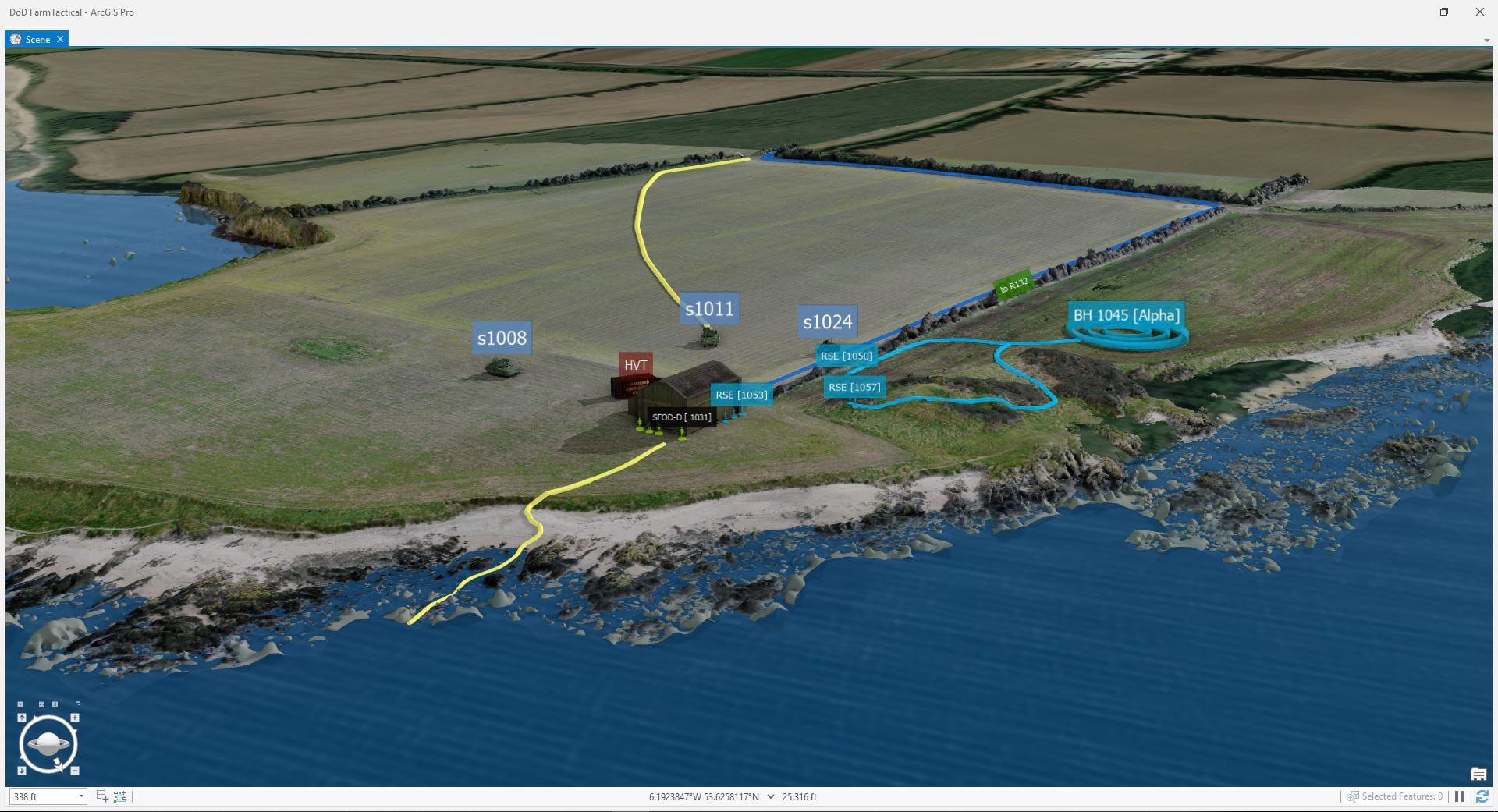 Both detailed 3D markers and industry specific symbology is important to establish context. The markers can either be temporally configured (time & range slider) or placed on layers to toggle visibility of different segments of time. The layers can then be toggled on and off to show various stages of movement over time. This could be visualization of stages of construction, generation of a deep foundation, or strategic markers. Combined workflows of interactive analysis and paths (i.e. lines, dashes, and arrows) can help others understand a plan across an area.