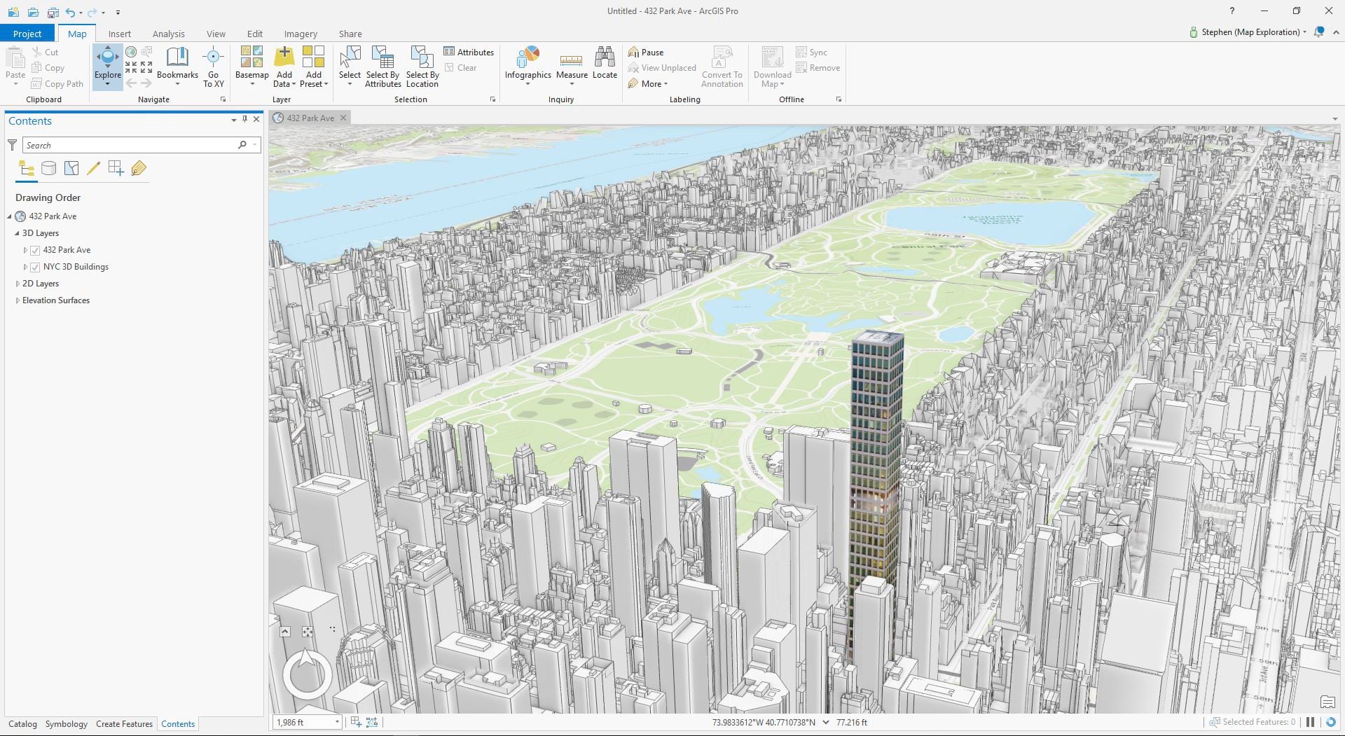 In the example image below, the audience would have a very difficult time isolating the building of interest if all of New York City’s buildings were textured. 432 Park is the only textured building in this example, and this isolates it for the audience and provides focus for any story or further analysis.