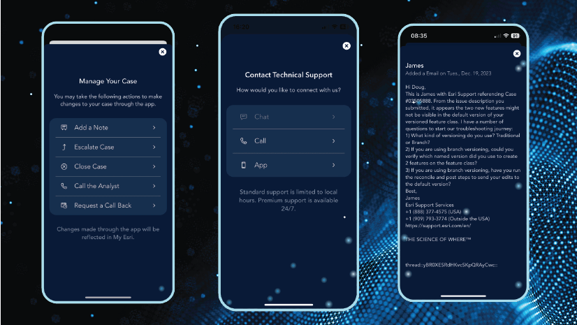 Esri’s Support AI chatbot is currently available only through the Esri Support mobile app to users who have a valid Esri account. Download the app in the App Store and on Google Play.