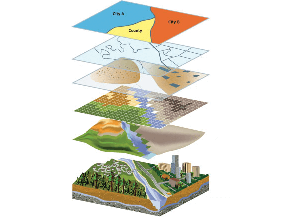In GIS each dataset is managed as a layer and can be graphically combined using analytical operators (called overlay analysis). By combining layers using operators and displays, GIS enables you to work with these layers to explore critically important questions and find answers to those questions.