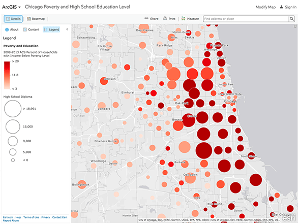 Smart mapping allows you to choose multiple attributes from your data, and visualize the patterns from each attribute within a single map using both color and size to differentiate (also referred to as bivariate mapping). This can be valuable for exploring your data, and allows you to tell a story using one map instead of many.