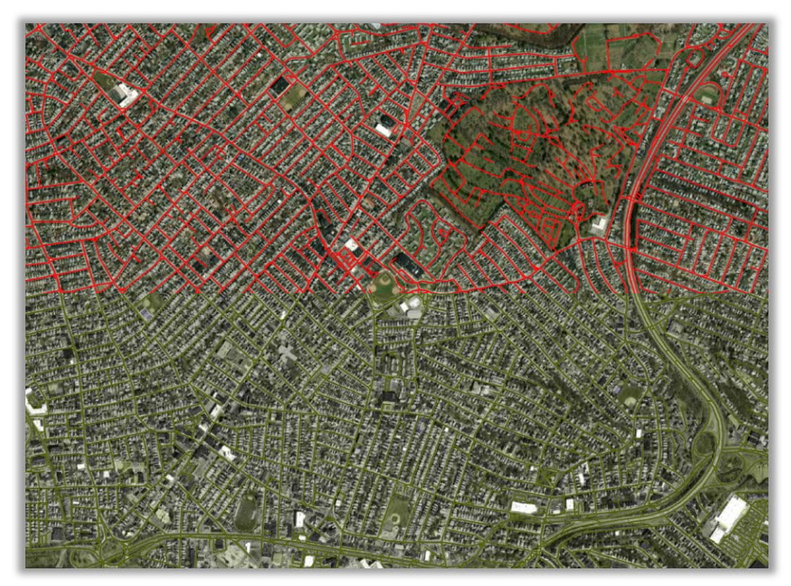 The new Road Extraction model is used to extract roads from satellite imagery. Roads are one of the primary GIS layers required by any county, city, state, or country governmental agency for infrastructure planning, urban planning, and developing an effective, efficient information model. Digitizing and updating roads can be time consuming. This model automates most of the digitizing process. It is based on the MultiTaskRoadExtractor in arcgis.learn model, which is a state-of-the-art model that provides connected road segments such as those shown in the following image: