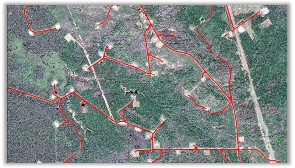 This model also works on dirt roads and well pad access roads such those shown in the following image: