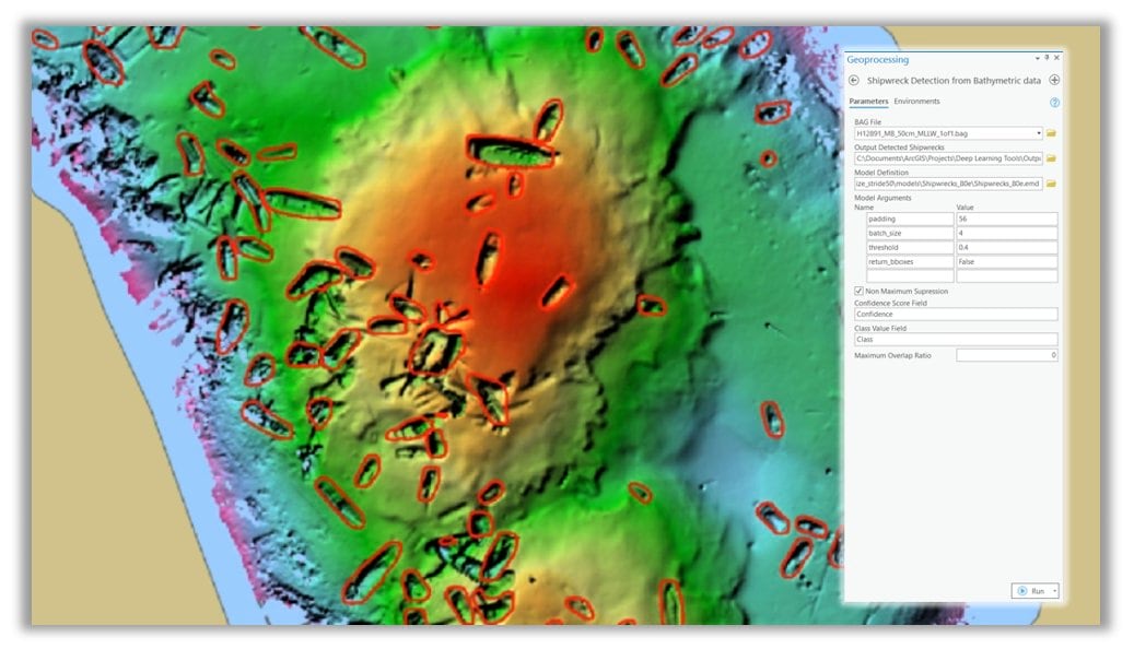 In addition to aerial imagery, these new models include one that detects shipwrecks using bathymetric data. Albeit a niche industry, it is a critical requirement to keep S57 nautical charts up to date. Unmarked shipwrecks can lead to disasters damaging vessels or ports resulting in loss of life and property.