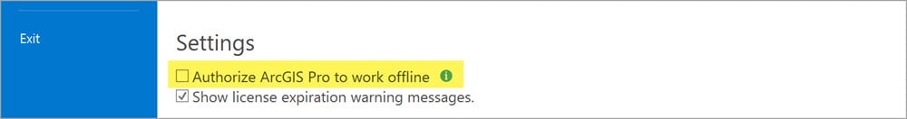 * Note: If you have authorized ArcGIS Pro to work offline, please make sure to return your offline license by unchecking “Authorize ArcGIS Pro to work offline” in your ArcGIS Pro settings before attempting to update the user type.