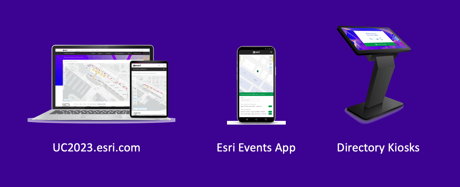 The UC Event Map is available now at uc2023.esri.com to allow you to get familiar with the venue and view locations of sessions and activities before you go. You can also generate a route and directions between two locations and view the estimated travel time. Use this map as a helpful tool, along with the Detailed Agenda and My Schedule, for planning your UC experience. The map will also be available in the Esri Events App and at directory kiosks on site in the convention center.