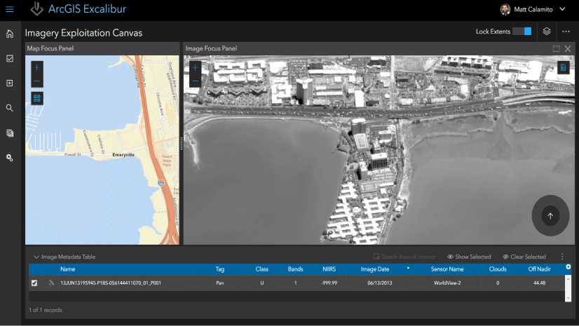 The new release of ArcGIS Excalibur v1.1 includes additional search settings filters and added functionality for layers. Additional search settings will enable users to refine results. Users can search observations based on the time that they were collected. Tools for the creation of a new observation layer has been added. The layer list lets you easily view and interact with layers in your imagery exploitation canvas has been improved so that you now have the ability to change the transparency on any context and project layers and allows you to easily toggle the visibility of the time slider for project layers.