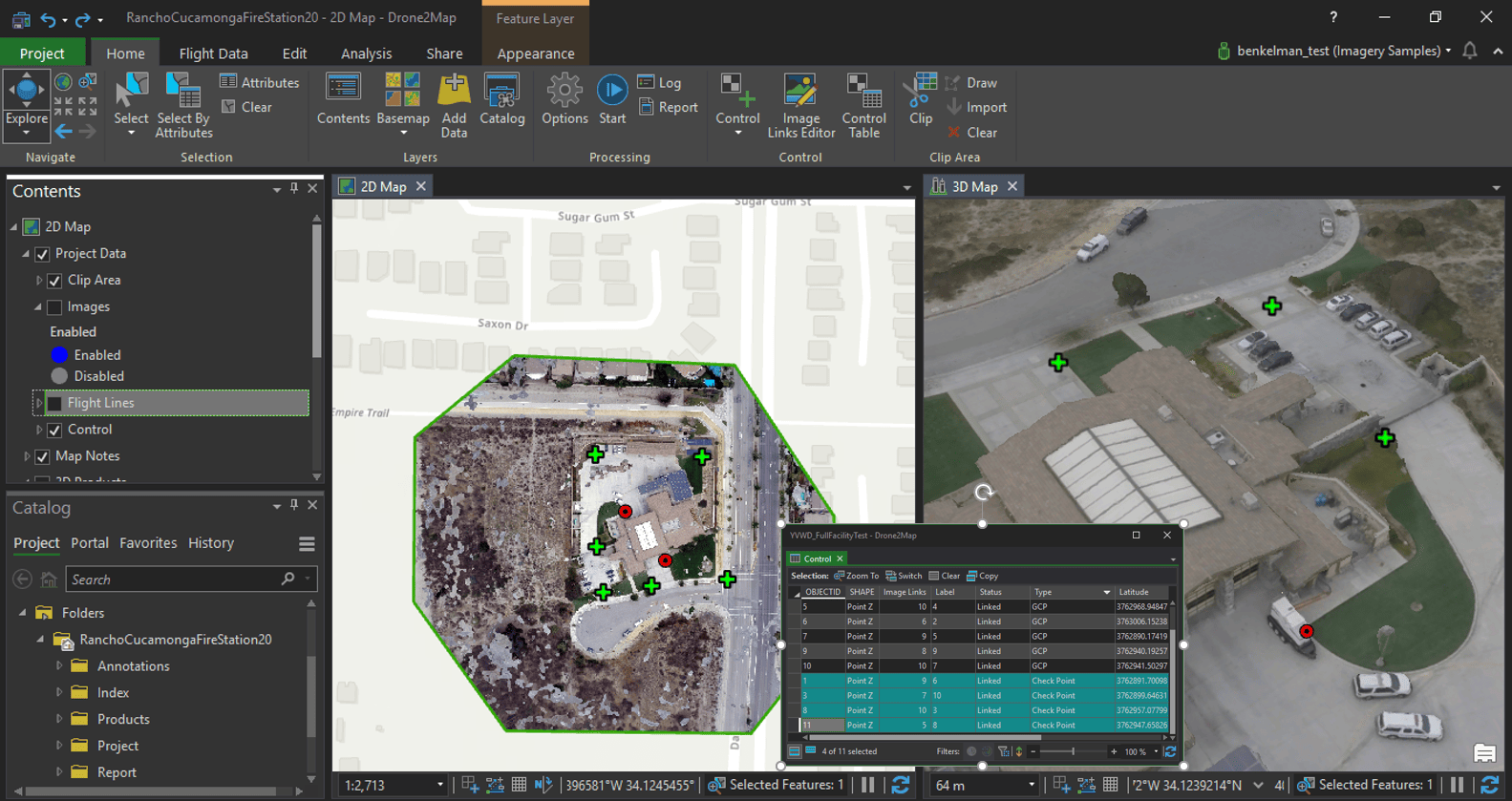 Drone2Map for ArcGIS 2.0 has a new underlying architecture to provide a deeper integration with the ArcGIS Platform, while still delivering a simple-to-use application for the non-GIS User. As a result, advances in image enhancements, 3D products, product accuracy reporting, and data management have been made. In image enhancements, options for changing the appearance of imagery and surface layers have been expanded to include dynamic range adjustment, histogram display, custom histogram stretches, more. E.g. Harvard U. just asked, “Can we get each image point labeled with the filename?” The answer is yes! New indices have been added for visualizing multispectral data. Better visibility to products and the built-in geodatabase without leaving Drone2Map for ArcGIS are possible with the addition of a catalog pane. Users can have more than one instance of Drone2Map running simultaneously.