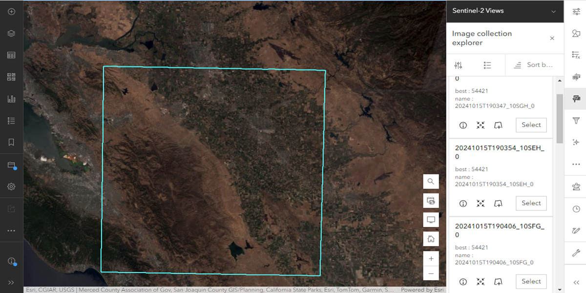 - The image collection explorer tool enables users to efficiently search through large imagery collections using metadata to quickly identify images based on acquisition date, quality, cloud cover, or resolution. This capability enhances image discovery and interpretation, making it easier to find specific images needed for analysis, such as conducting simple change analyses across two time periods. Users can dynamically visualize their imagery of interest on a map or further exploit them with ease.