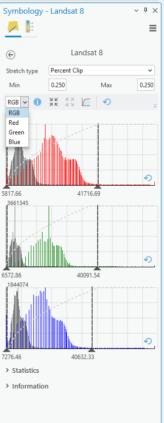 - This release features enhancements to the interactive histogram, making it more engaging and insightful for users. You can now interactively zoom in for a magnified view of the histogram and examine each histogram band individually for RGB data. These improvements enable more precise adjustments for accurate visualization.