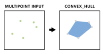 Use the analysis tools in ArcGIS Online, or the geoprocessing tools in ArcGIS Pro to quantify the geographic relationships in your participants’ activity spaces. One analysis that can quickly communicate the size of participants’ activity spaces is creating Convex Hulls, or Minimum Bounding Geometry. A set of points that is run through this geoprocessing tool gives you a polygon of the minimum bounding geometry enclosing each point in one’s activity space.