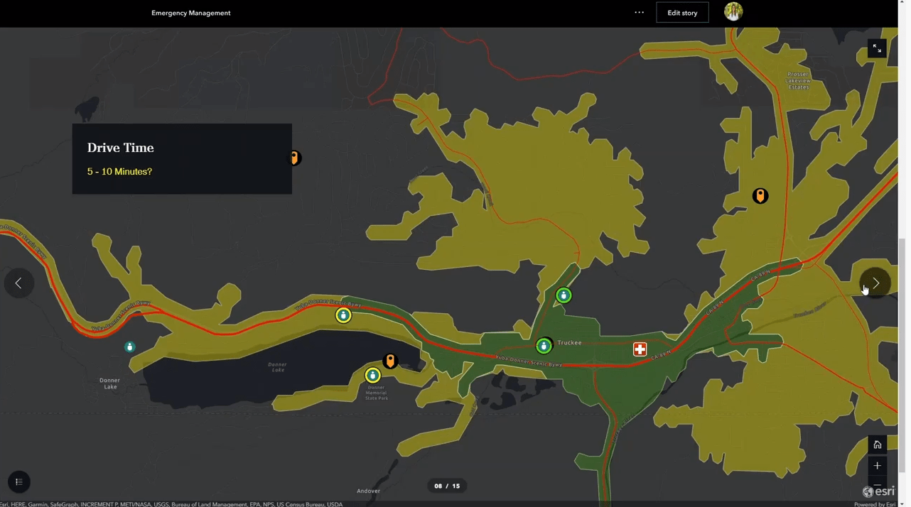 Damage capture is complete. Now the job is to dispatch crews and deal with critical facilities. The next step is to order the recovery process. Using ArcGIS StoryMaps we demonstrate the logistics of recovery. Given that streets may be impassible, drive time analysis provides the best path for ordering recovery. This demo addresses optimal staging areas, crew sequencing, and routing.