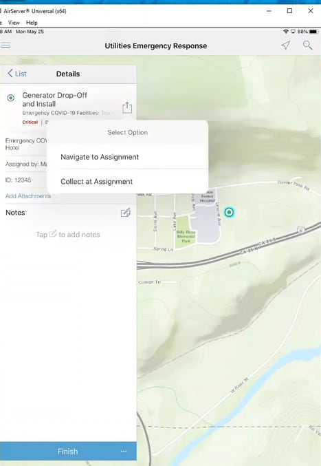 Workforce for ArcGIS Used on a Tablet to Manage the Installation of an Emergency Generator to a COVID-19 Facility