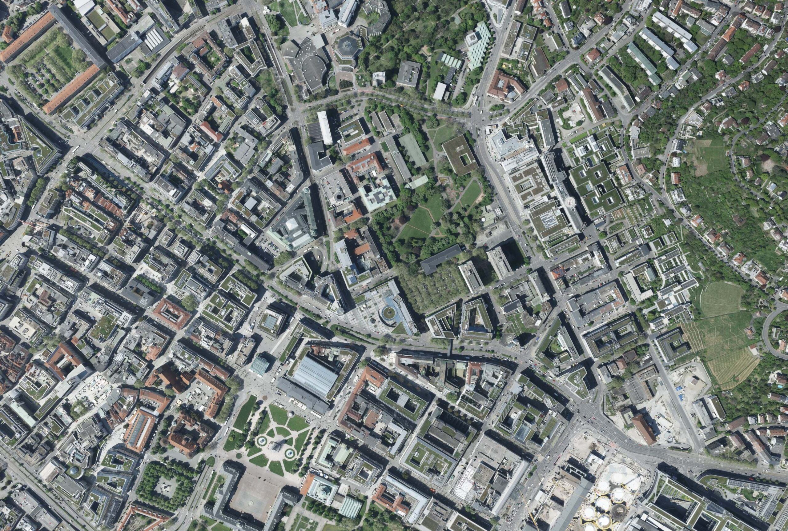 The process of flight planning and aerial image acquisition is different for every city, and several aspects must be considered: Ground Sampling Distance (GSD) and image overlap are essential components of the planning and are specified in a tender. For Cities with basin-like topography such as Stuttgart, the calculation of the consistent flight height needs to consider the longest distance to ground to guarantee that the maximum GSD is not exceeded, while maintaining the required overlap for all images.