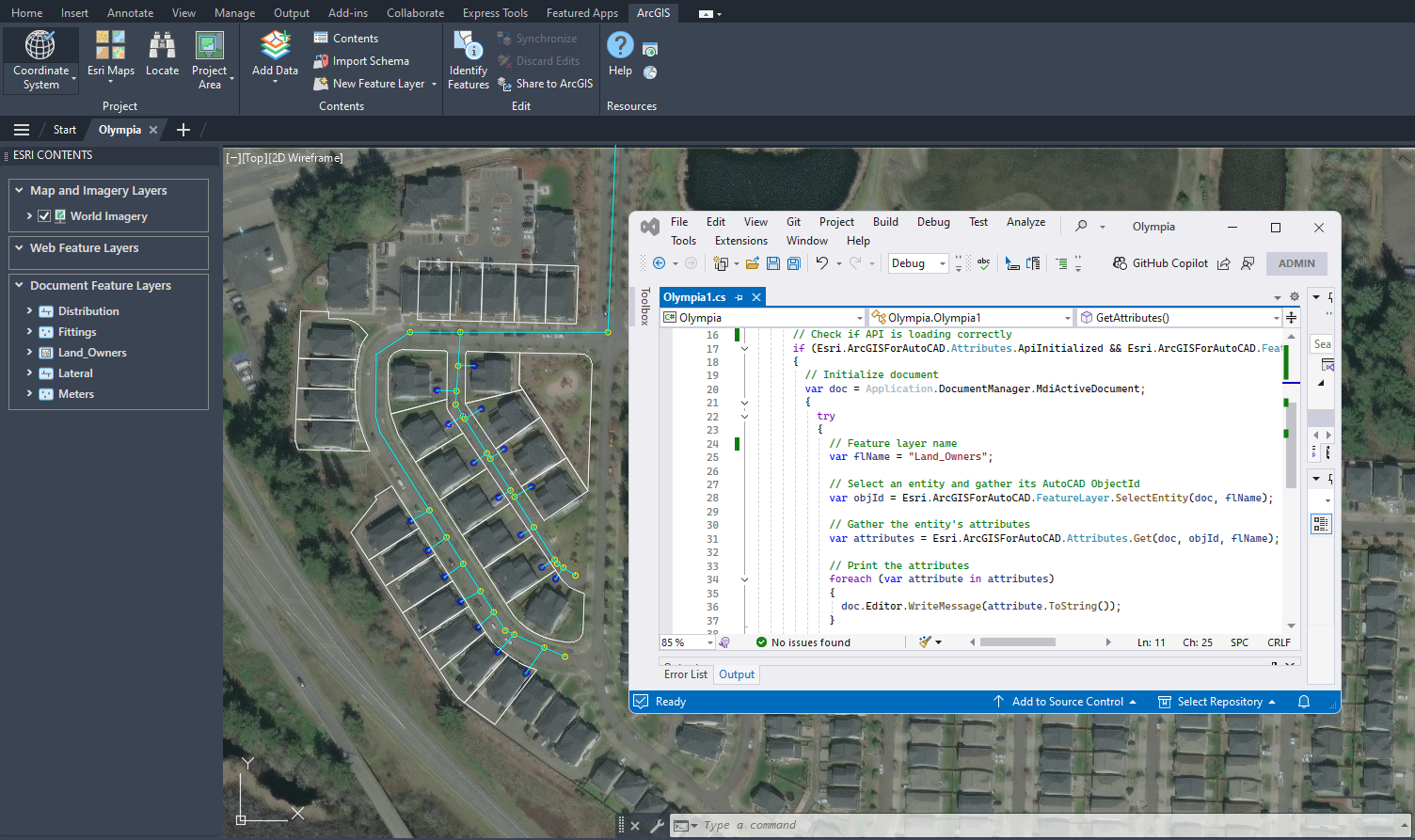 To get started, install the latest version of ArcGIS for AutoCAD and view the documentation to learn more about the various supported methods. Then, access our GitHub repository where you’ll find .NET samples alongside LISP scripts. We’re interested in hearing your feedback and enhancement ideas, which you can share on our GitHub site or by posting in Esri Community.