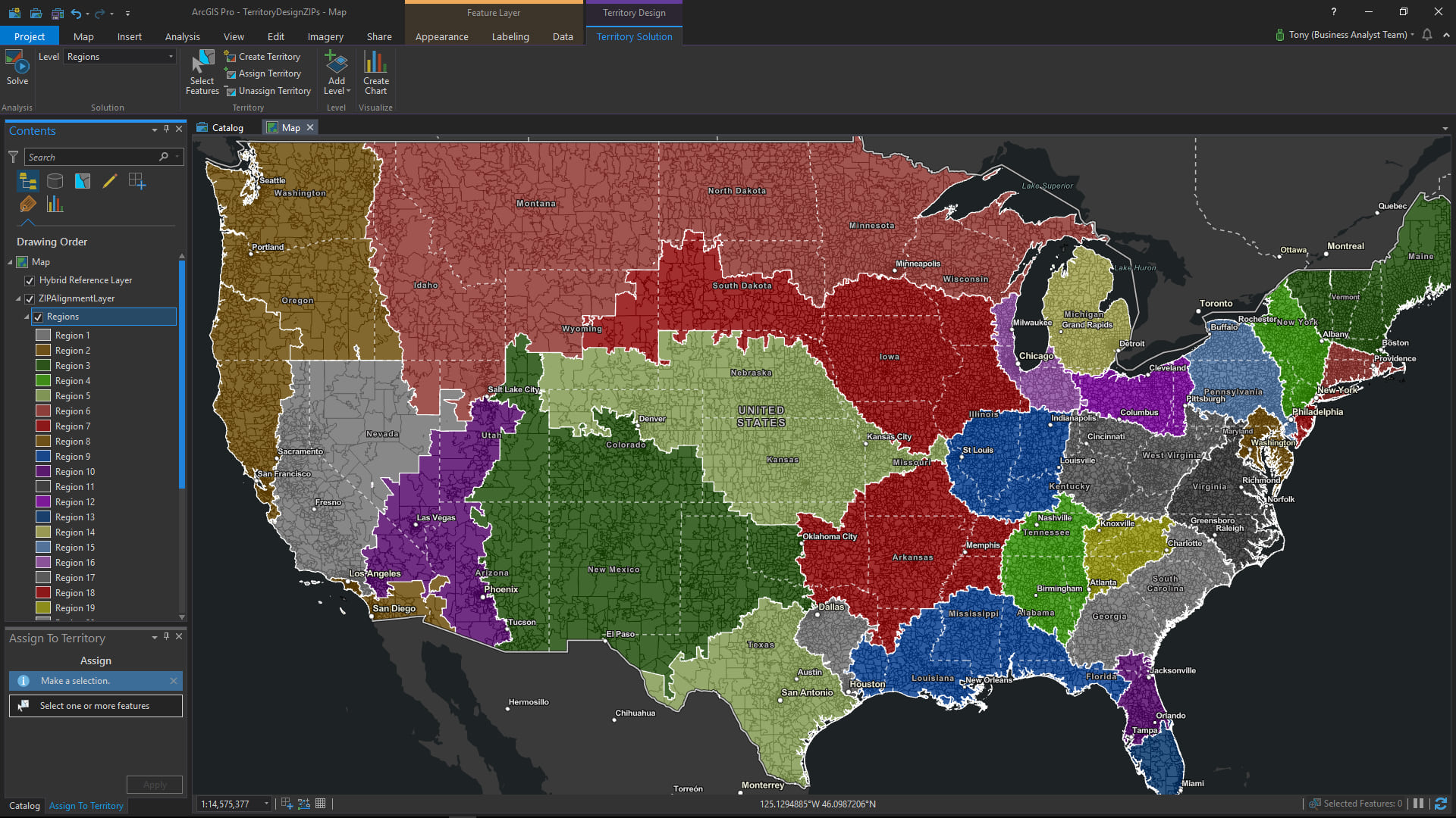 The second basic workflow supported with the Territory Design Toolbox will help you interactively create and update your territories.