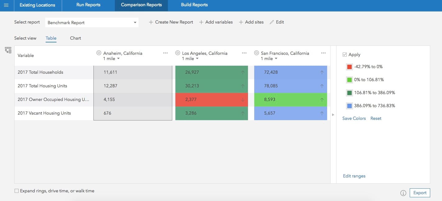 - Use text attributes from your own data in reports and infographics. For example, include the text-based parcel land use information in custom reports and infographics and put it together with numerical data (e.g. demographics) aggregated for your sites.