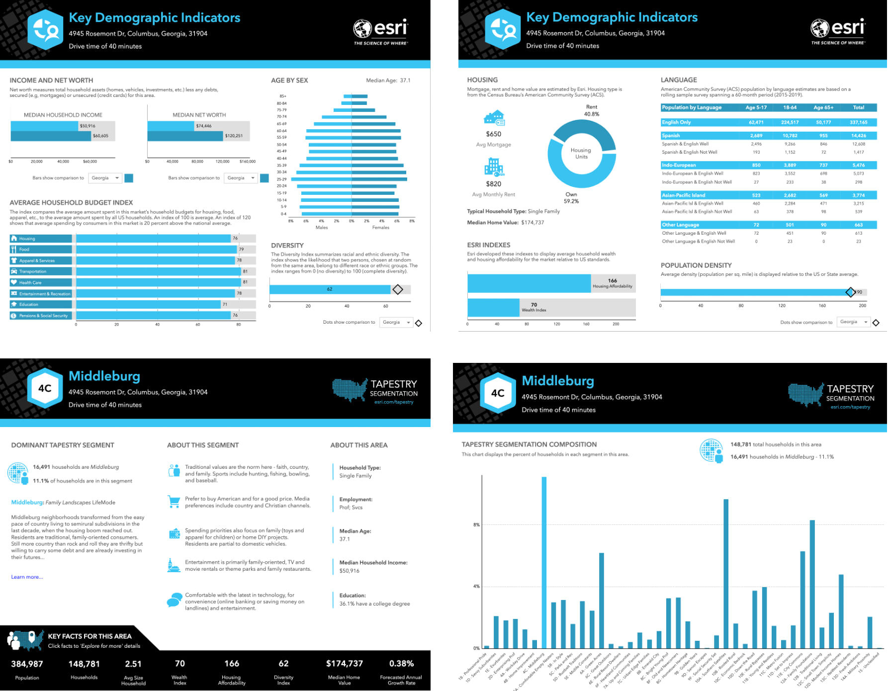 - ArcGIS Business Analyst Web App (Advanced and Standard)