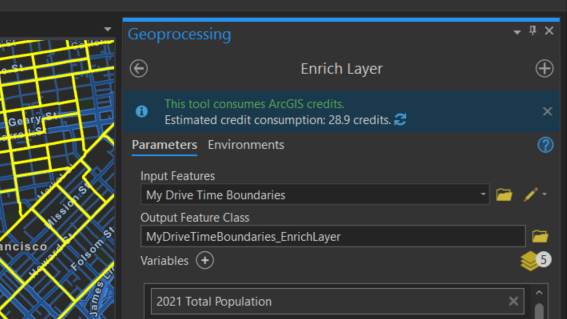 Have you used ArcGIS Business Analyst online data in a workflow and realized after completion the credit used was not what you estimated? With a variety of 2.9 geo-processing tools, you can now put all your focus towards your workflows and easily determine the estimated credit usage prior to starting a project. Simply populate the reports, layers, variables needed and with a simple click, you can identify how many credits will be used.