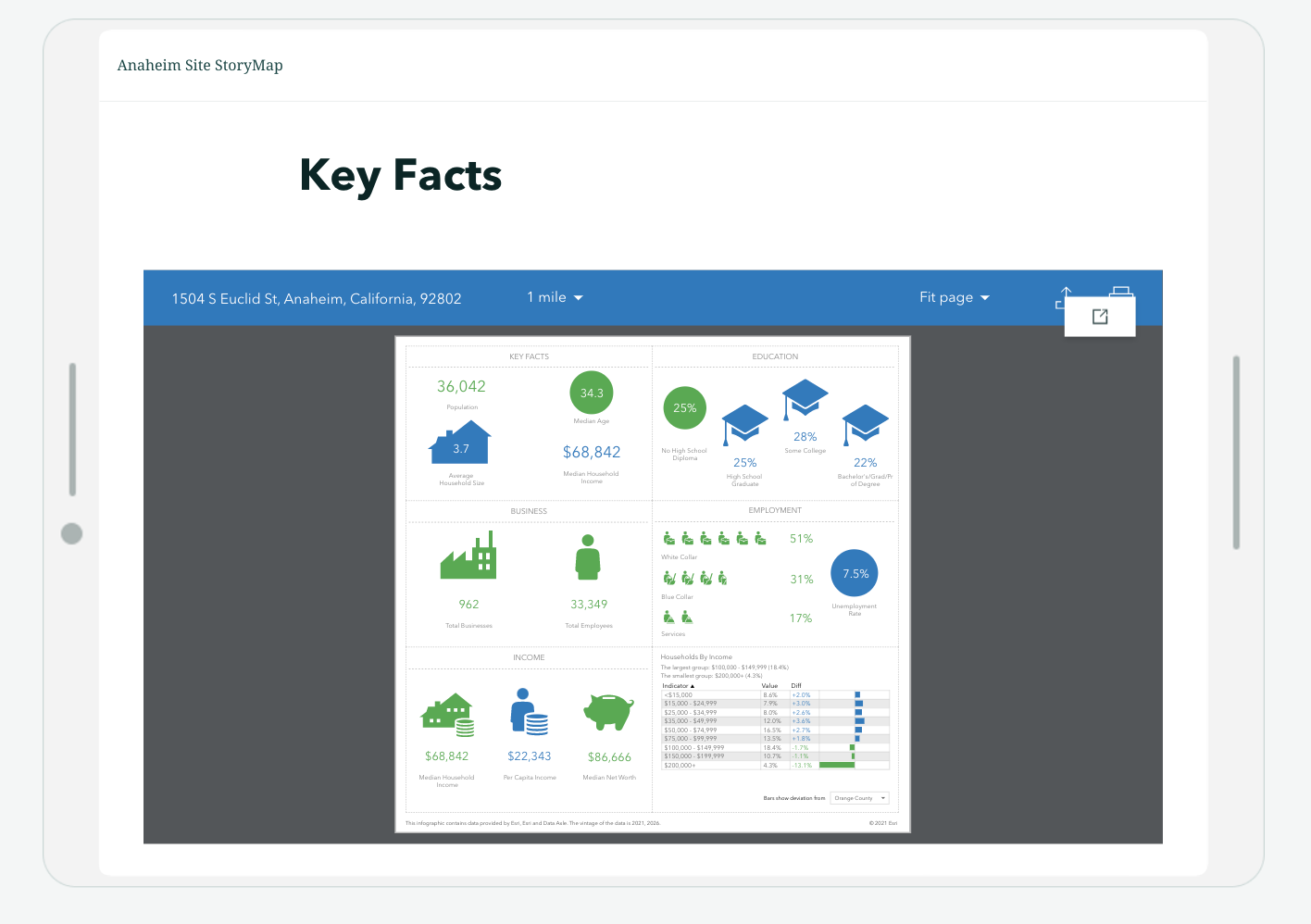 In 2019, Esri released the latest generation of its storytelling tool, ArcGIS StoryMaps. This exciting tool includes all the popular storytelling patterns and features, new enhancements every month, and an array of new capabilities. In this release of ArcGIS Business Analyst, users creating new stories with sites and infographics will now default to the modern ArcGIS StoryMaps template. The latest ArcGIS StoryMaps includes new design templates, autosave and more. See why you should use the new ArcGIS StoryMaps.