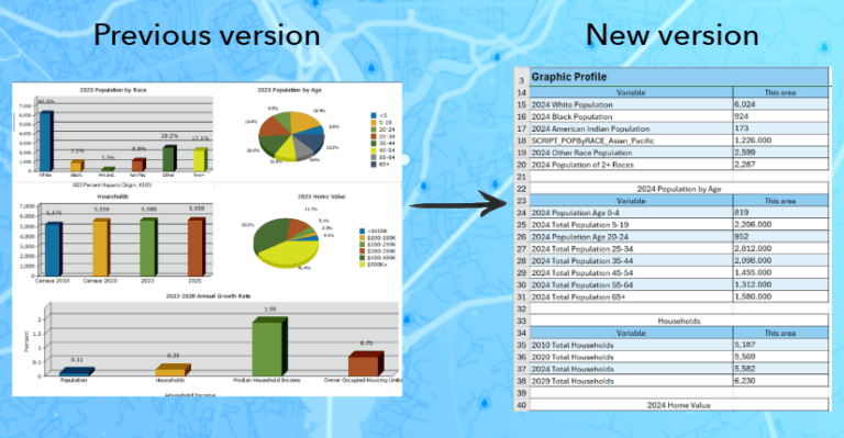 The Business Analyst widget in ArcGIS Experience Builder is a popular and well-loved tool that provides users with the ability to view additional information about any point or polygon feature on a map through the creation of reports and infographics. Check out some of our new enhancements: