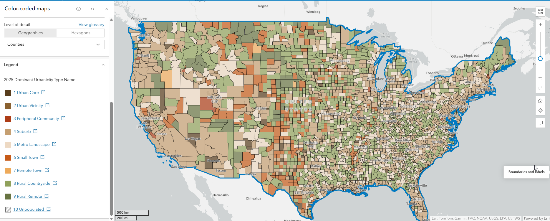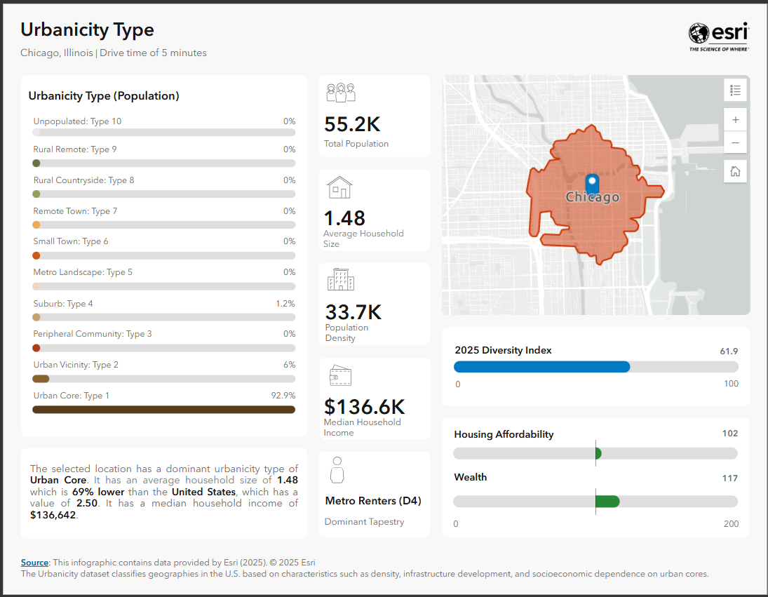 Additionally, the infographic for Urbanicity Type has been updated. You can find it in the Gallery for Esri 2025.