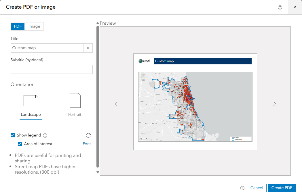 After applying effects to your map, share the results by creating a PDF or image, or sharing an ArcGIS web map with the Export to a new hosted feature service option enabled.